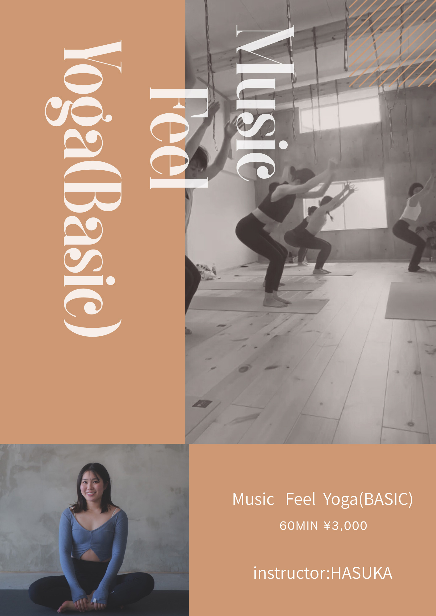 | 概要 | MUSIC × YOGA =♡ 音楽のリズムに ポーズと呼吸を合わせて流れる フロースタイルのヨガ。 最後は1曲を通して まるでダンスのように完成させます。 ヨガでもあり、 ダンスでもあり、 リズム運動でもある。 柔軟性・体幹・筋力UPも感じながら “自分と繋がる時間”をつくる60分。 音楽が好きな人。 動くことが好きな人。 新しい自分に出会いたい人へ。 |
